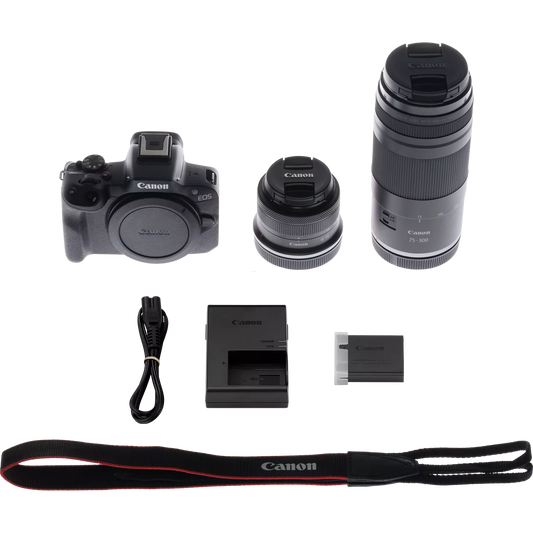 Canon EOS R100 Mirrorless Camera + RF-S 18-45mm F4.5-6.3 IS STM Lens + RF 75-300mm F4-5.6 Lens