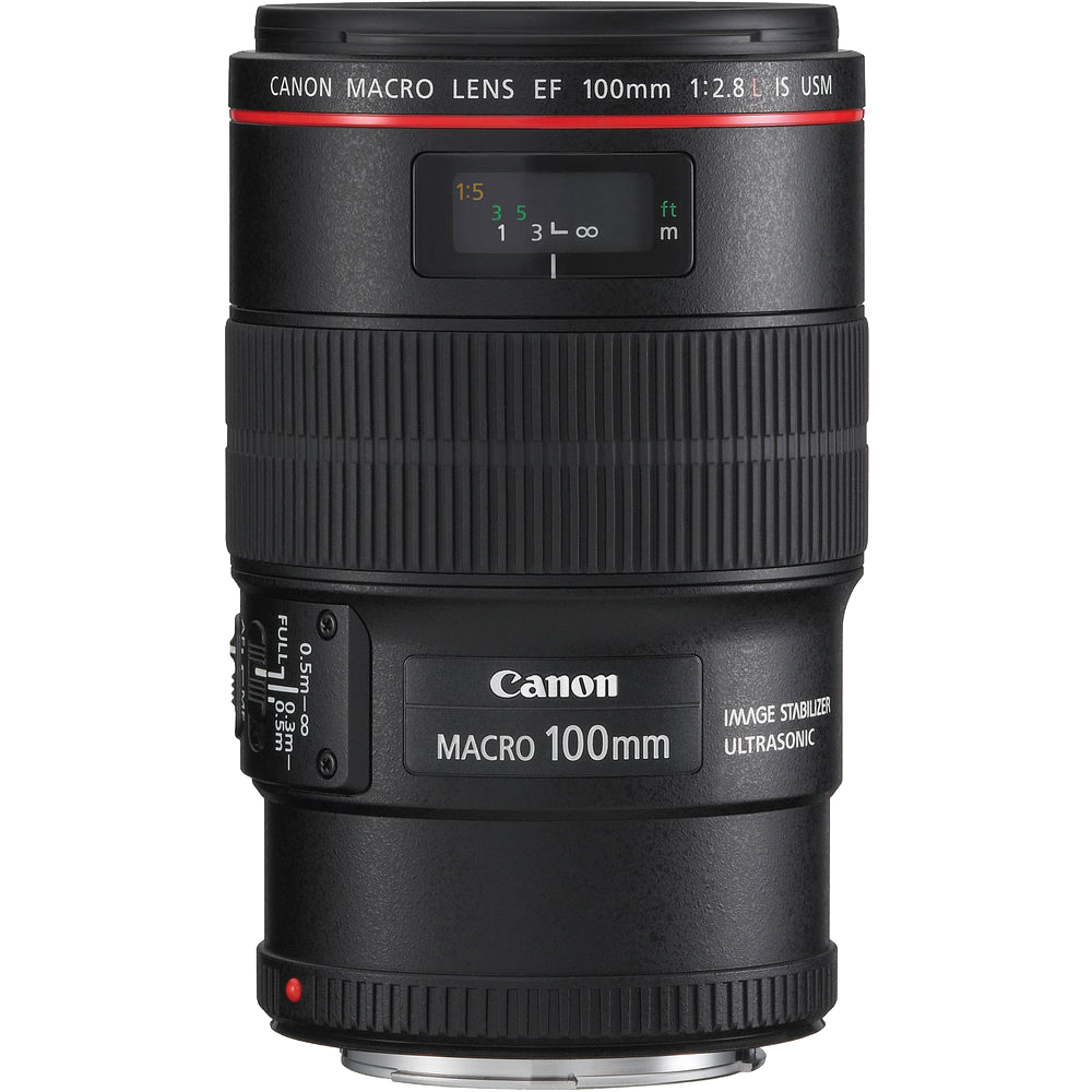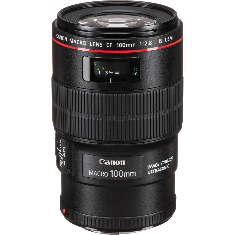 Primarily designed for close-up shooting, the EF 100mm f/2.8L Macro IS USM from Canon is a versatile L-series short telephoto prime that is also well-suited for portraiture and other mid-range subjects. As a macro lens, however, this 100mm offers a life-size, 1:1 maximum magnification and an 11.8" minimum focusing distance. Complementing close-up shooting, an Image Stabilizer is featured that minimizes camera shake by two stops at full 1:1 magnification, or up to four stops at lower magnifications for sharper handheld shooting.