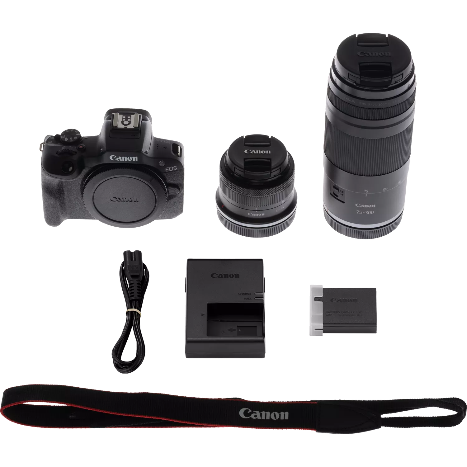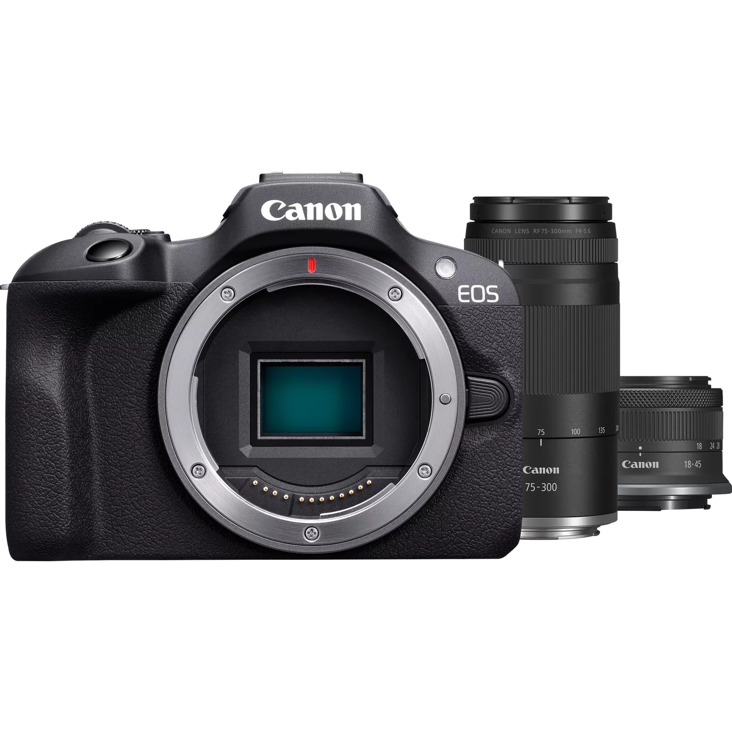Canon EOS R100 Mirrorless Camera + RF-S 18-45mm F4.5-6.3 IS STM Lens + RF 75-300mm F4-5.6 Lens