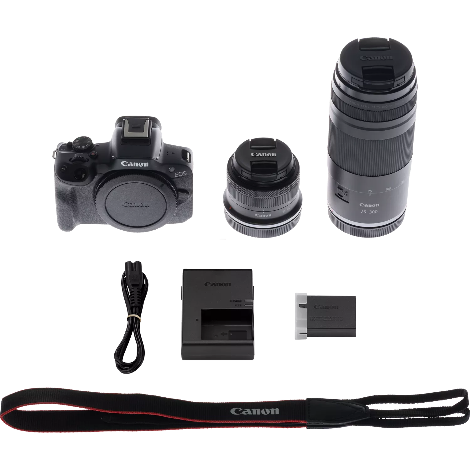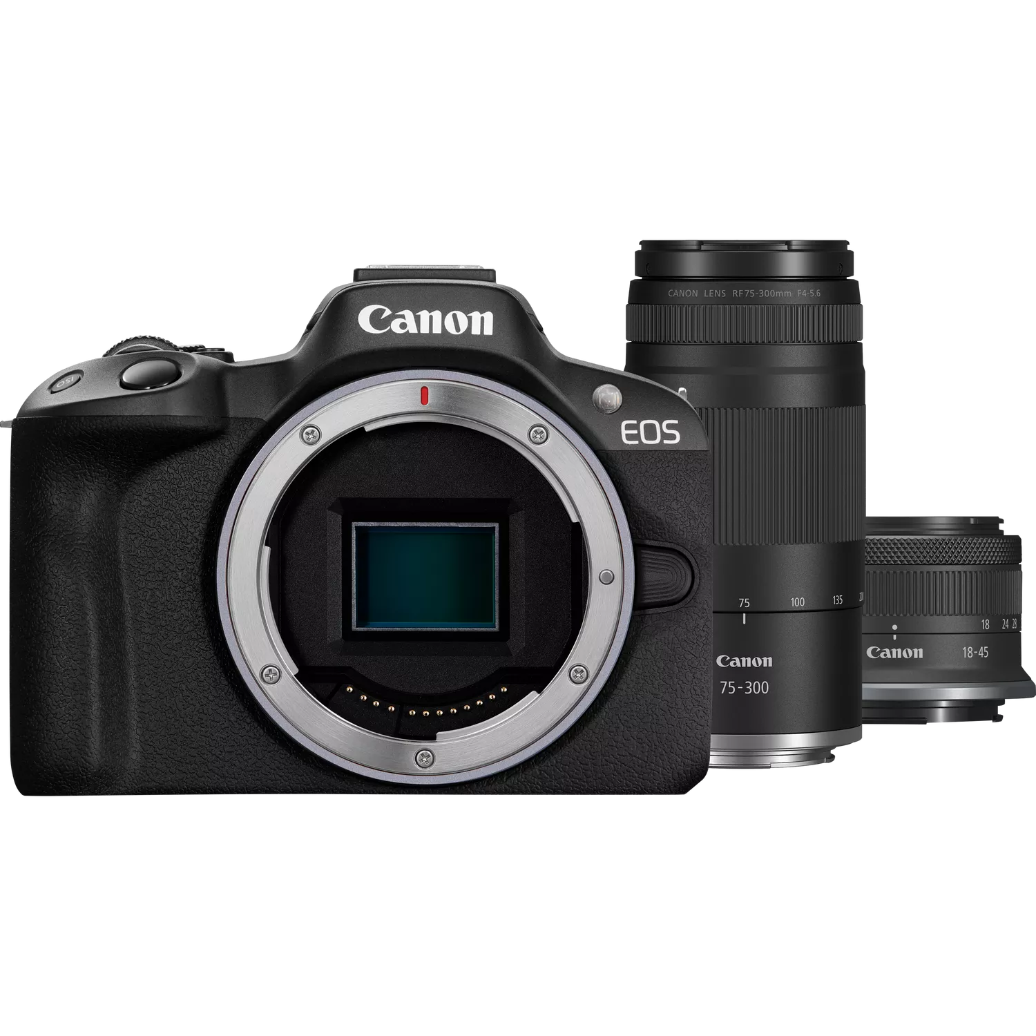 Canon EOS R50 Mirrorless Camera, Black + RF-S 18-45mm F4.5-6.3 IS STM Lens + RF 75-300mm F4-5.6 Lens