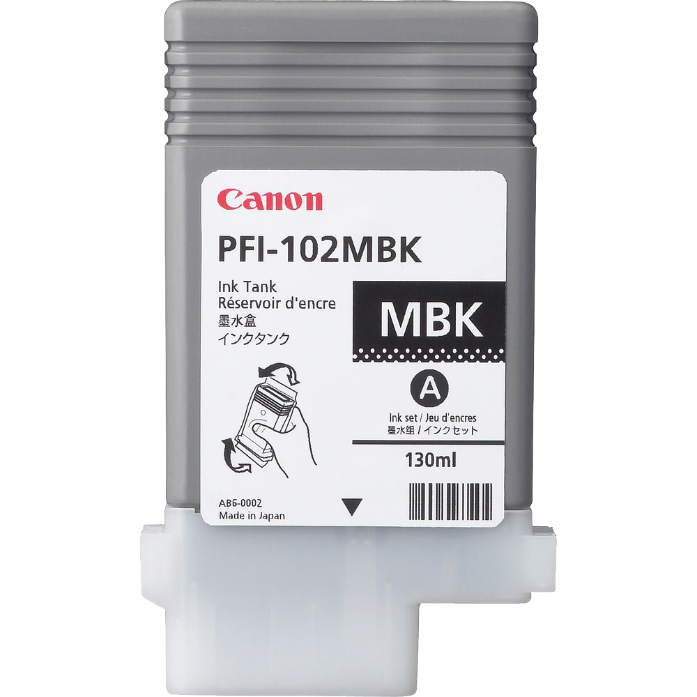The Canon PFI-102MBK Matte Black Ink Tank contains 130 ml of ink and is compatible with the following printers: