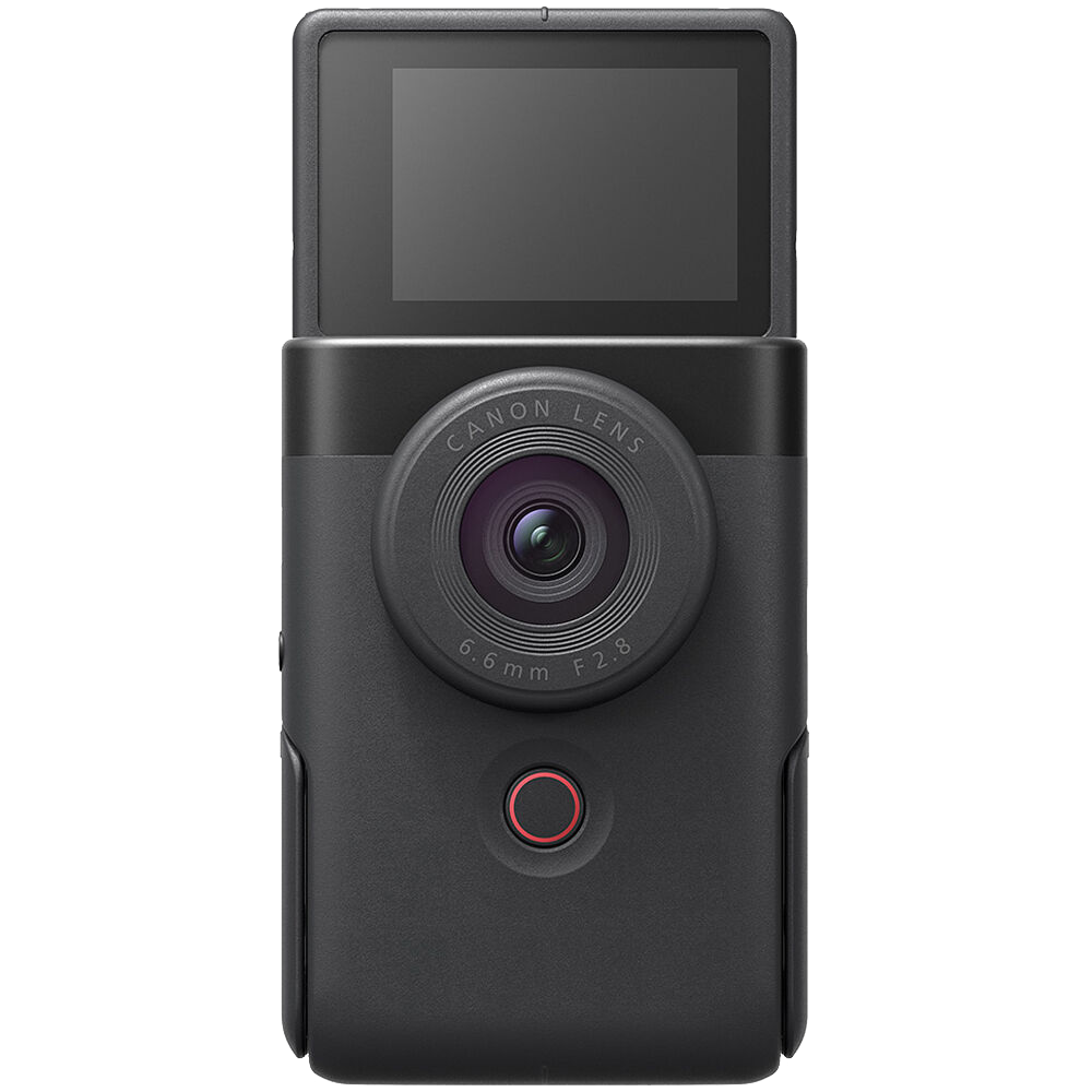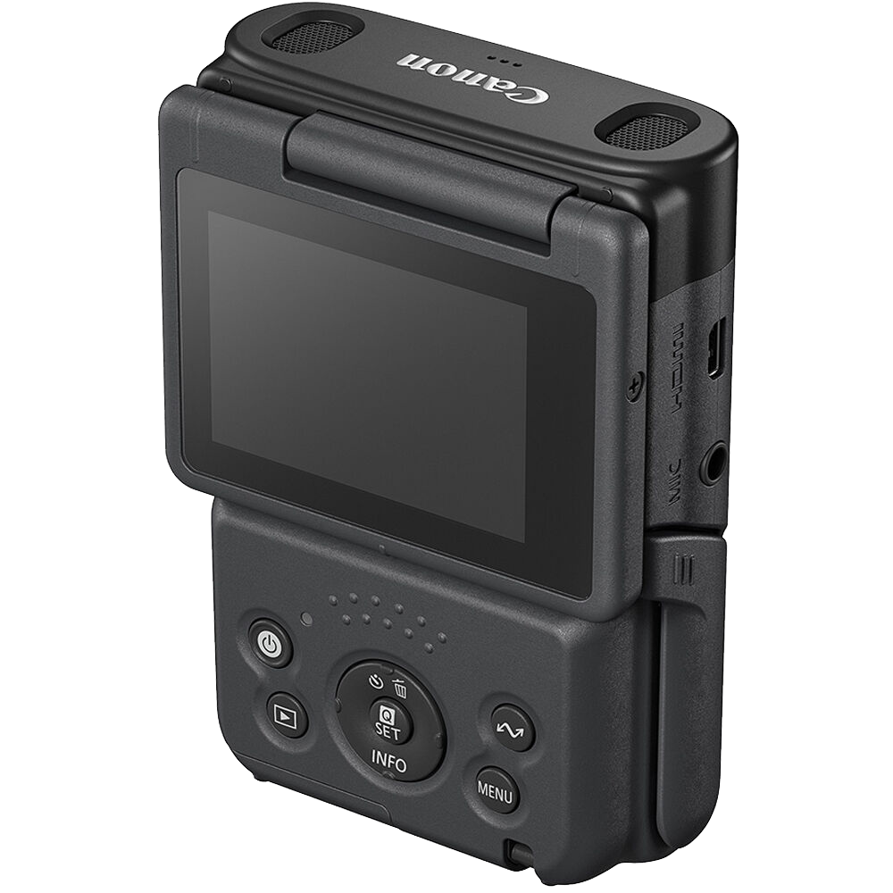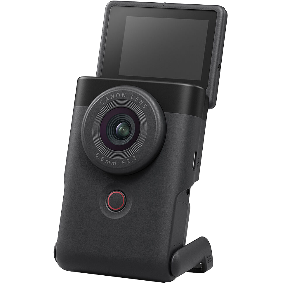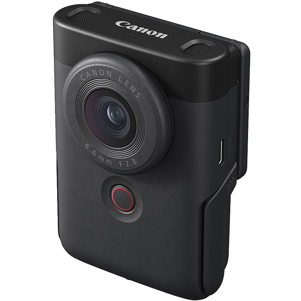 Condensing the utility of a vlogging studio into a portable, pocket-sized powerhouse, the Canon Powershot V10 is a black, vlog-ready video camera with a 19mm wide-angle lens, high-quality stereo sound recording, and a built-in 30° stand for capturing and sharing your unique story. The camera, which also shoots still photos, features the same 1" CMOS sensor from the popular PowerShot G series cameras for shooting UHD 4K at up to 29.97 fps or Full HD at 59.94 fps. Immediately share your creations with the built-in Wi-Fi capabilities and the Canon Camera Connect app, or live stream to your followers in Full HD at 30 fps.