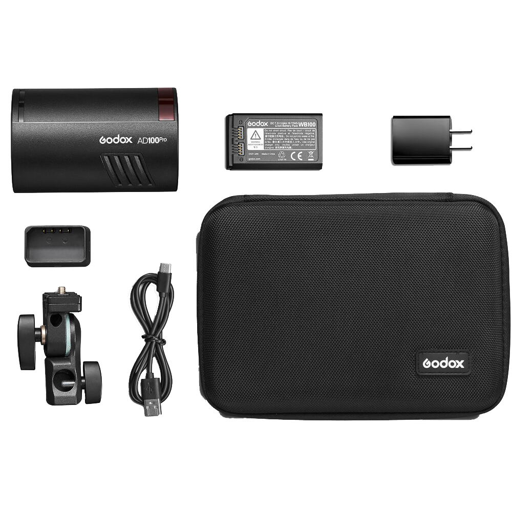Building on the popularity of its predecessor, black-finished AD100Pro Pocket Flash from Godox is a compact speedlight with a removable lithium-ion battery that gives you up to 360 full-power flashes and thousands of lower power flashes.