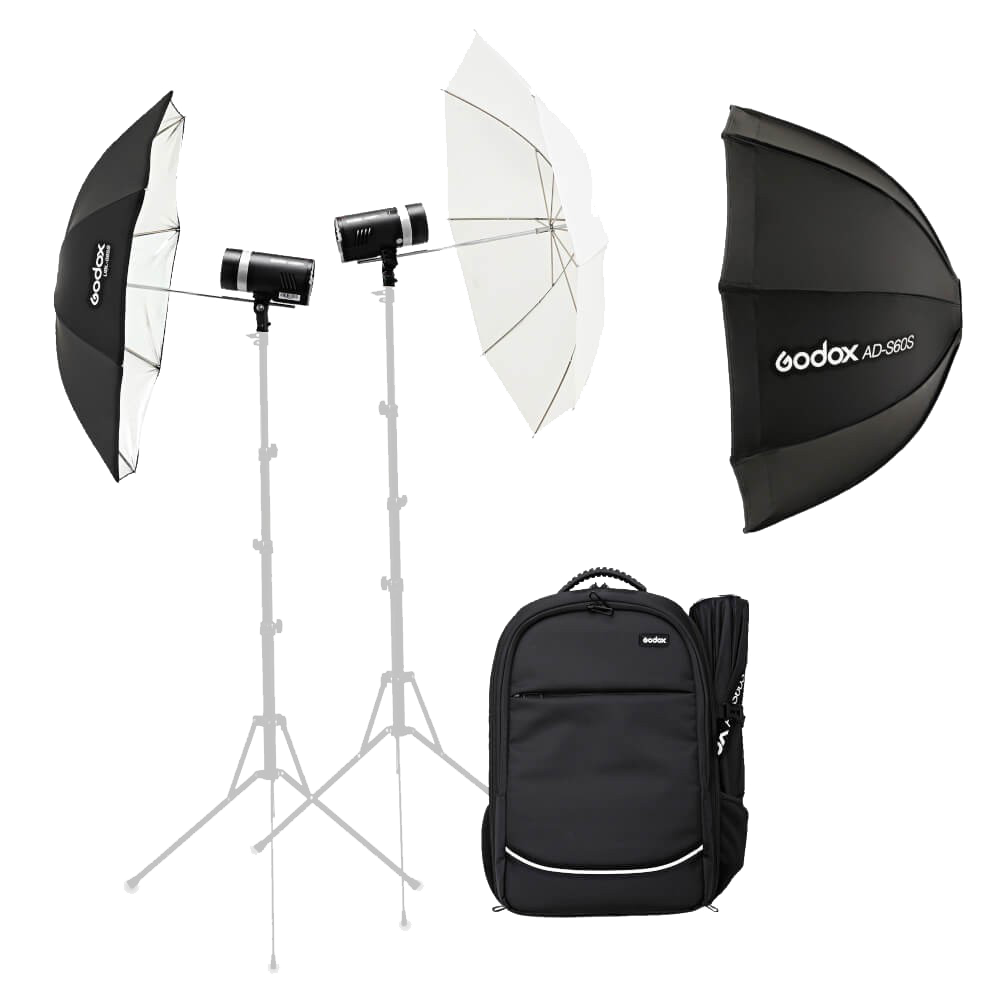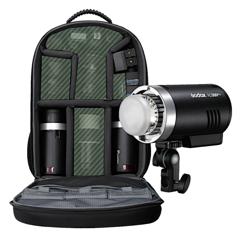 Godox AD 300Pro Dual Flashes is a set that has basic lighting and accessories included in the backpack, which is ideal for shooting in outdoor.