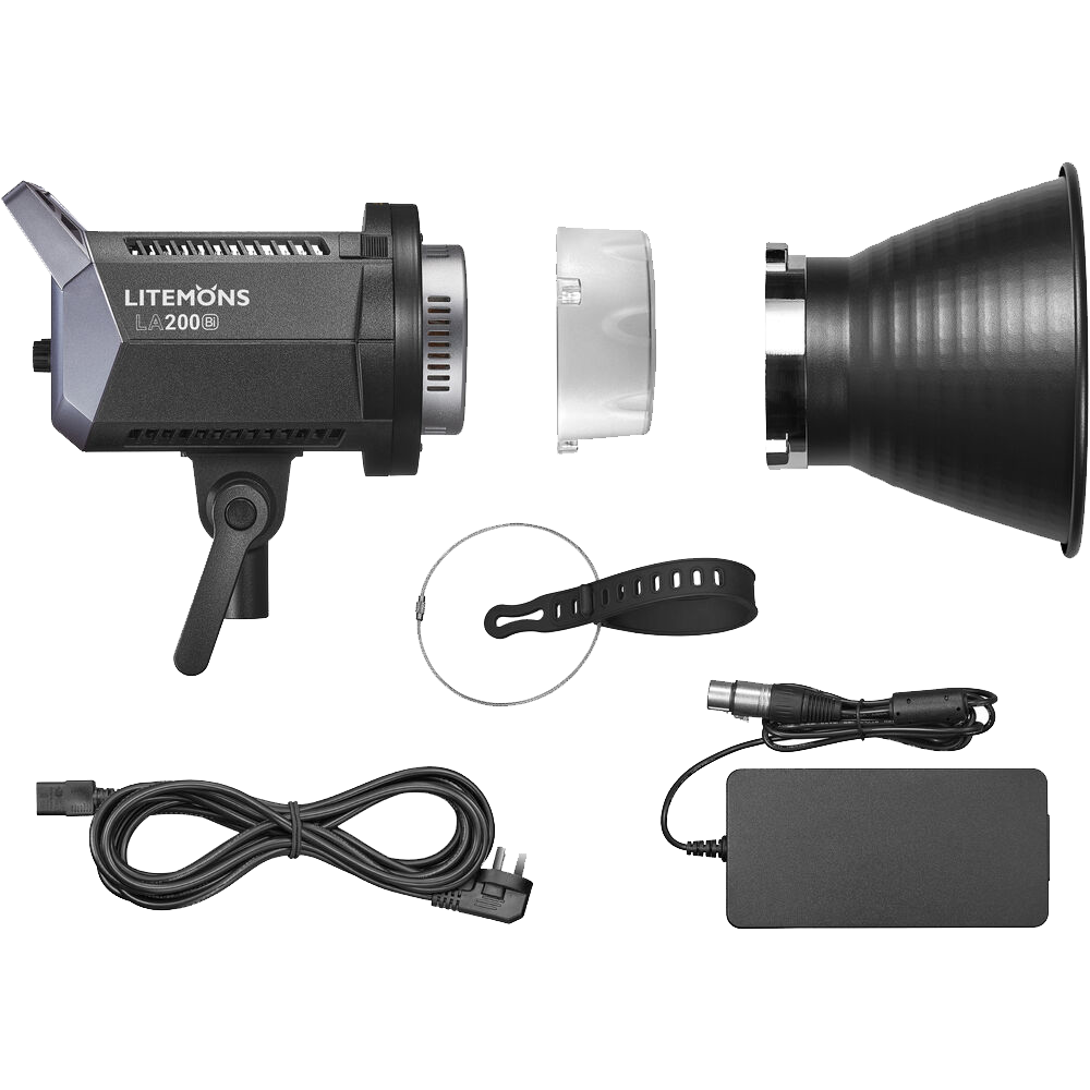 A versatile and intuitive lighting tool, the Litemons LA200Bi Bi-Color LED Light from Godox offers a budget-friendly lighting solution for YouTubers, livestreamers, content creators, and more. Providing a crisp beam of light with sharp shadows, this high-output, bi-color LED light ensures natural and faithful colors in a variety of lighting environments, and with stepless dimming from 0% to 100%, you can quickly adapt the light to any scene. Offering an advanced level of creative control, eleven special effect modes include flash 1, flash 2, flash 3, storm 1, storm 2, storm 3, TV, broken bulb, candle, fire, and firework. The light is also configured to accept Bowens S-mount light modifiers and accessories, such as the included reflector, and a built-in umbrella mount is provided for additional versatility.