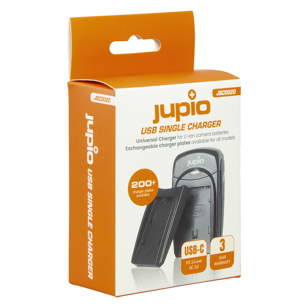 The Jupio USB Single Charger (JSC0020) is the USB-powered version of the well known JSC0010 Jupio Single Charger. This line-up of universal chargers is very popular because with one charger you can charge more than hundred different types of camera/ camcorder batteries of all well known brands!