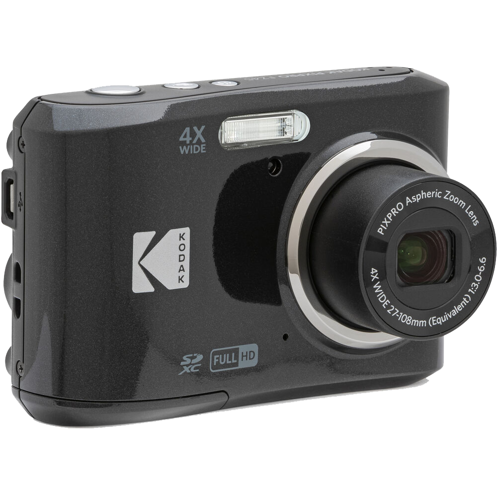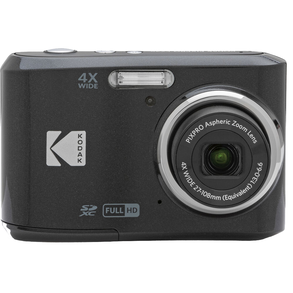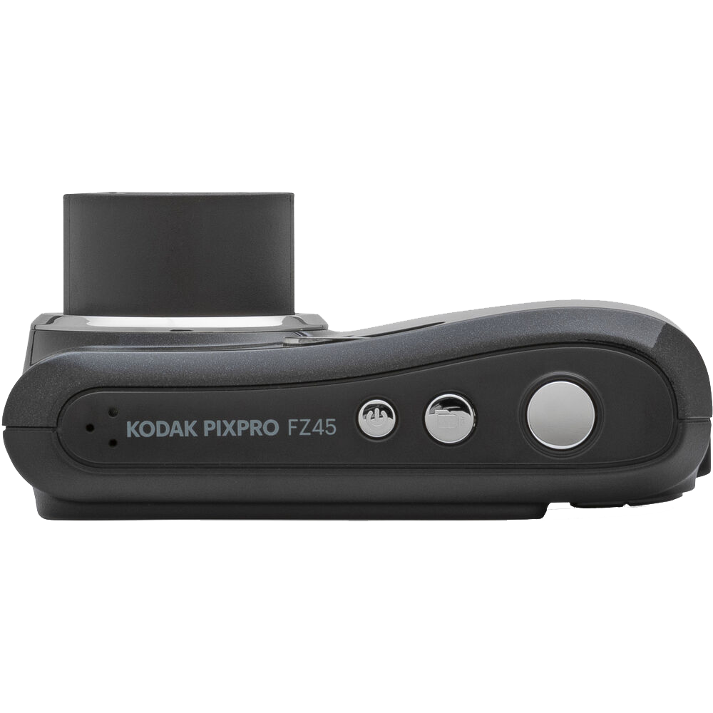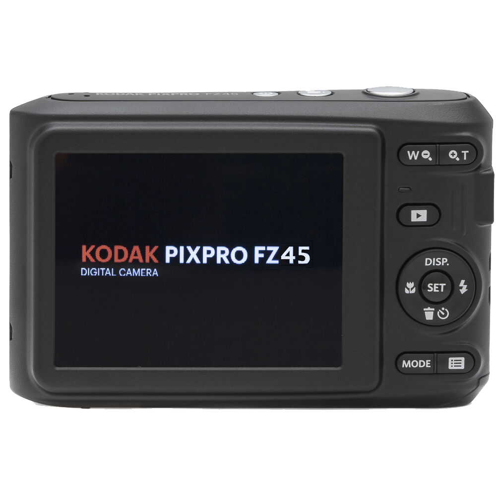 The Pixpro FZ45 Digital Camera from Kodak is a small black point and shoot and one of the friendly zoom models from the Kodak Pixpro digital camera collection. Small and easy to use, this camera is an ideal choice for on-the-go shooting. It is conveniently powered by two AA batteries and features a 2.7" LCD screen, a 4x optical zoom, one-touch full HD video, red-eye removal, face detection, and more.