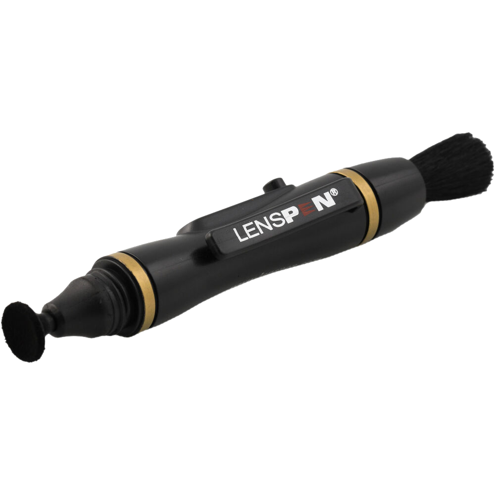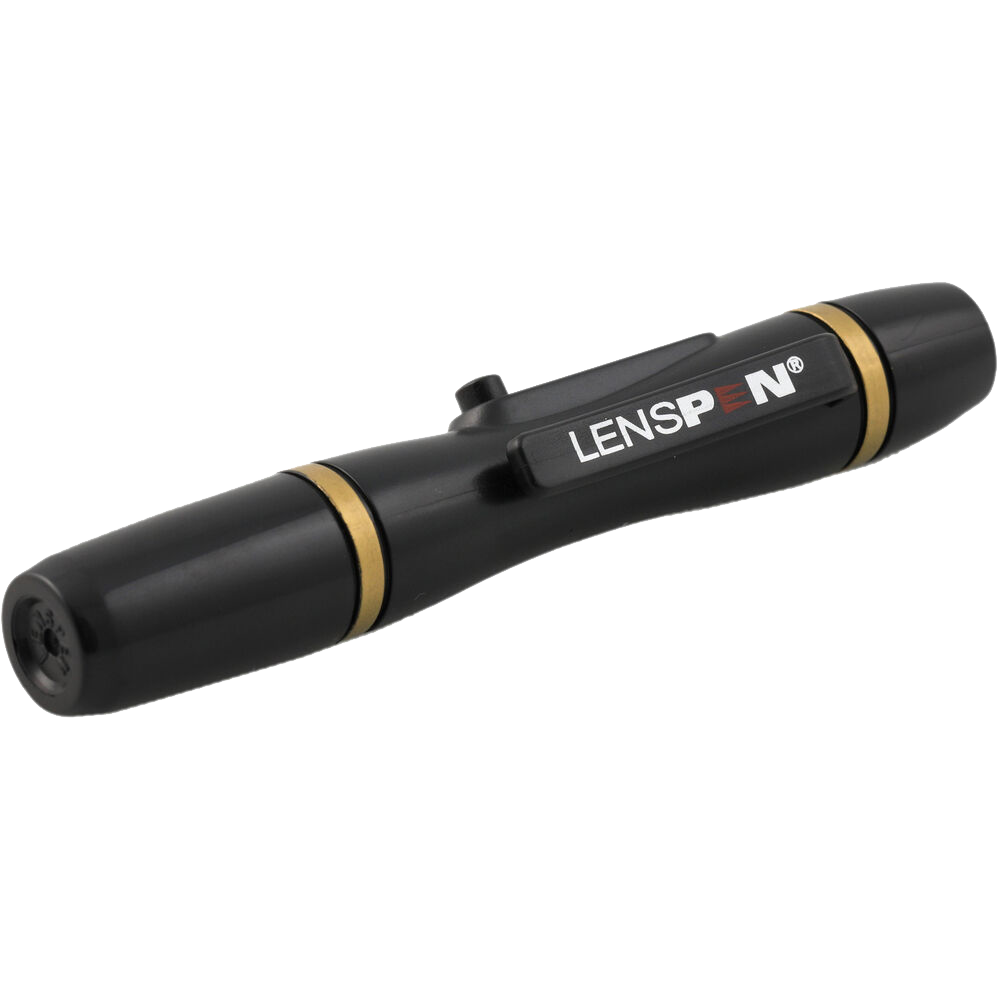 The black LensPen Lens Cleaner is a small, lightweight, pen-shaped cleaning tool, designed for camera lenses and other optical items. Its 0.47" (12mm) cleaning tip is slightly concave, making it especially compatible with the convex shape of lenses on digital SLR cameras, binoculars, rifle scopes, and more. A retractable brush is included for dust removal.