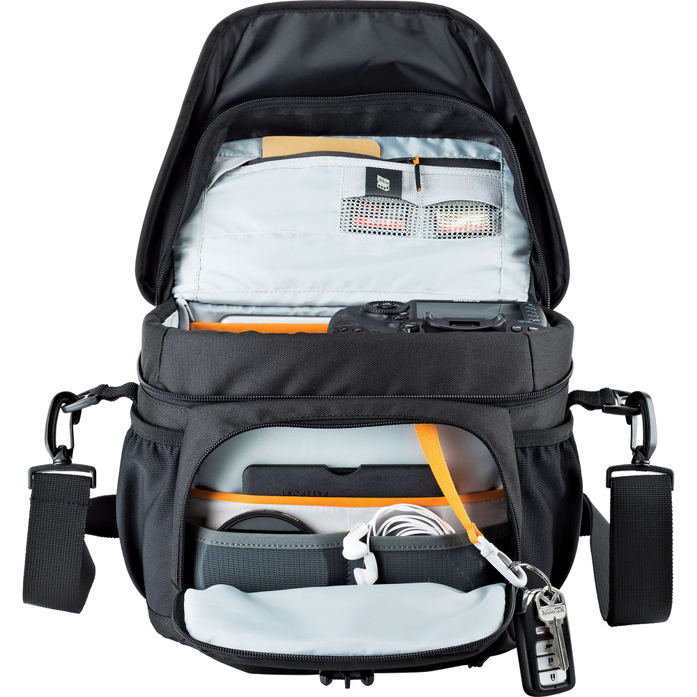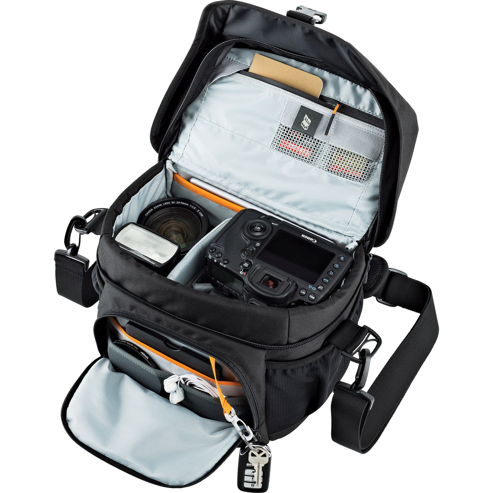 Our iconic Nova camera bag continues to evolve to protect the latest in camera technology. The newest edition of this timeless camera shoulder bag maintains premium protection from the elements for a pro-depth DSLR camera with attached 24-105mm lens plus 3-4 additional lenses and flash or compact photo drone.