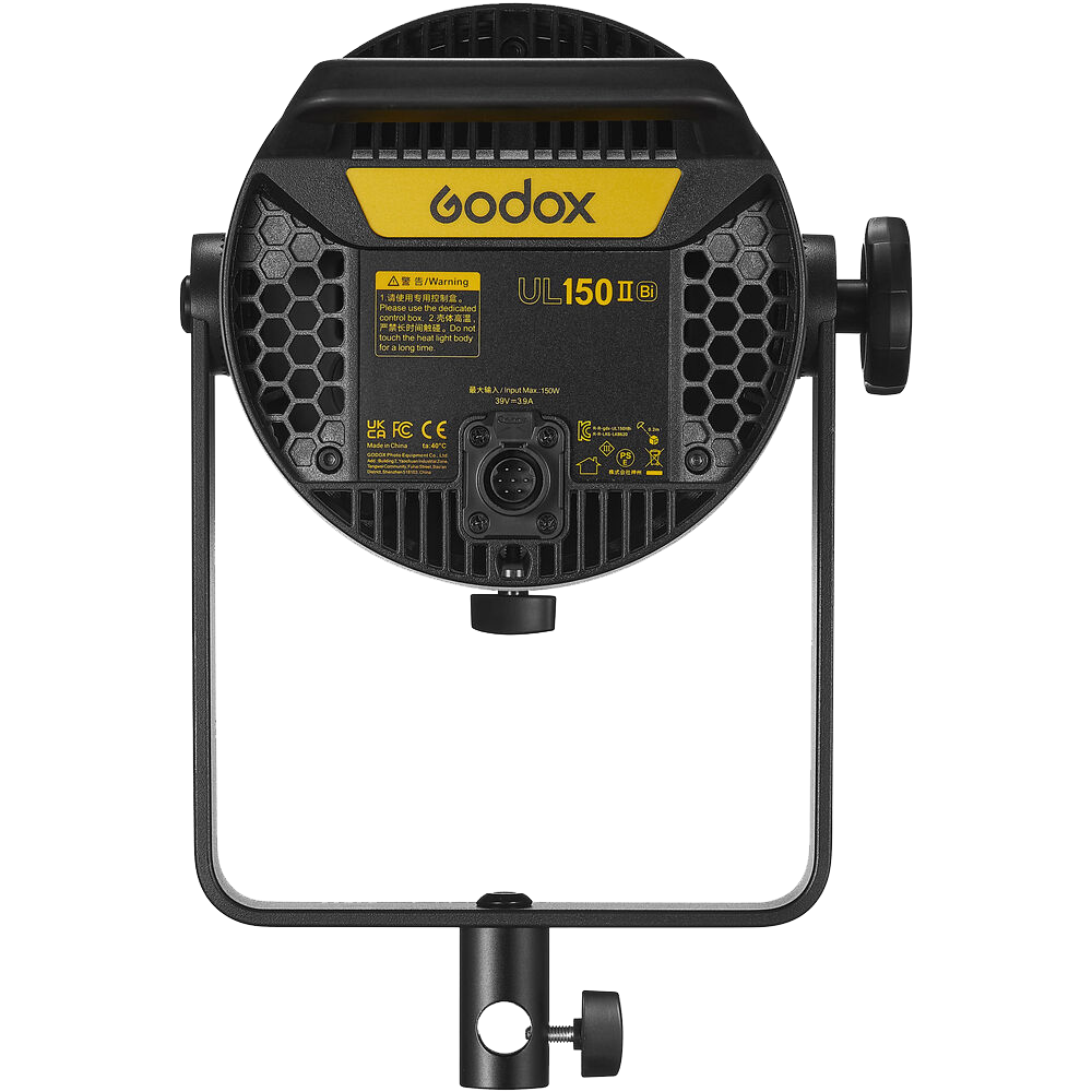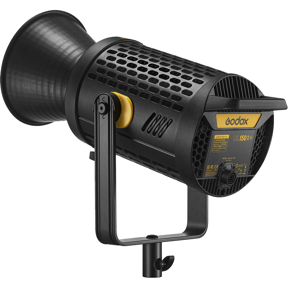 Using a fanless cooling design, the GODOX UL150 II Silent LED Video Light is a bi-color 155W LED monolight-style light source designed for broadcasting, cinematography, livestreaming, and other video applications with sound. It can be powered with optional V-mount batteries, and controlled via the Godox app, DMX, or through the upgraded external controller. An AC adapter is provided for in-studio use.